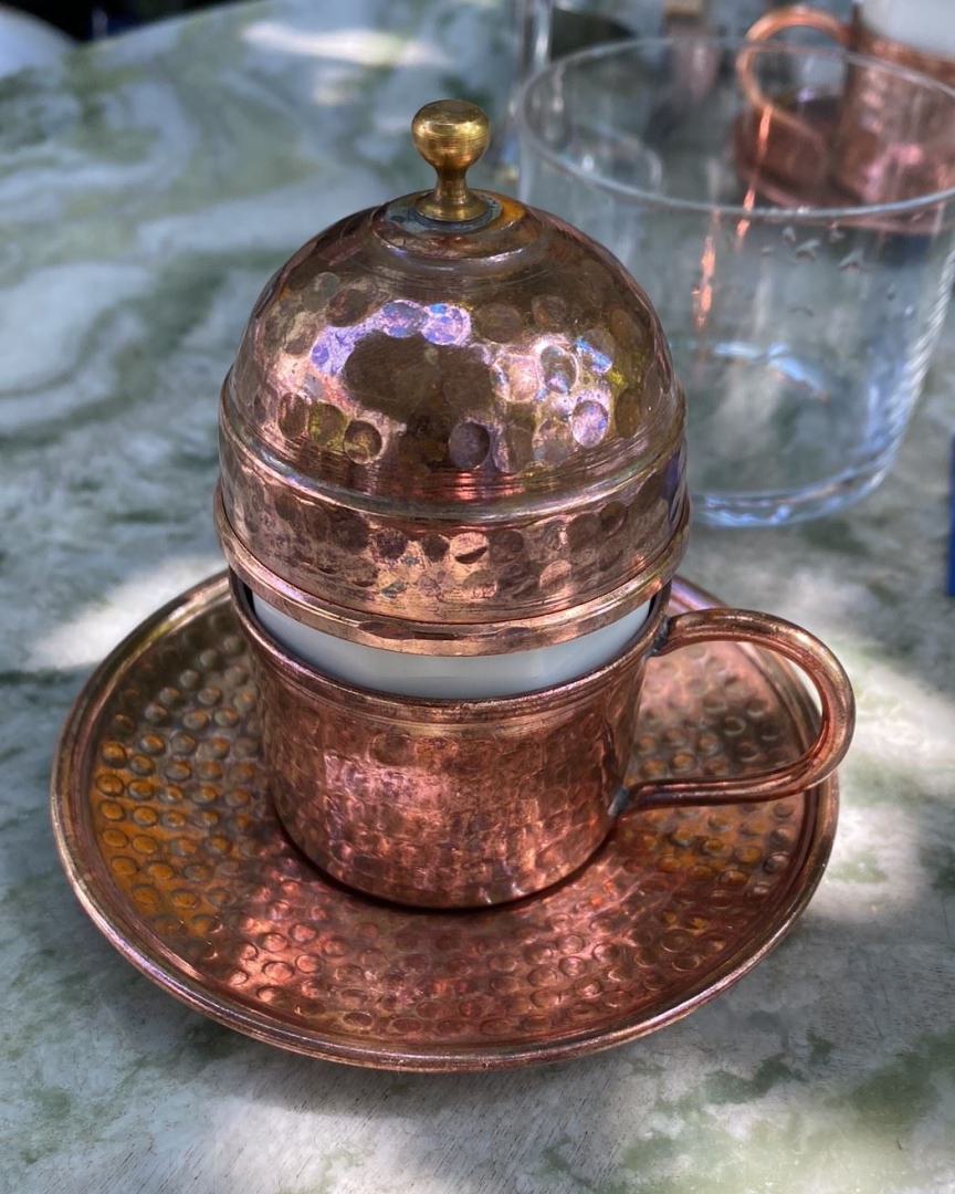 Mit dem türkischen Mokka wird immer ein Glas Wasser serviert.