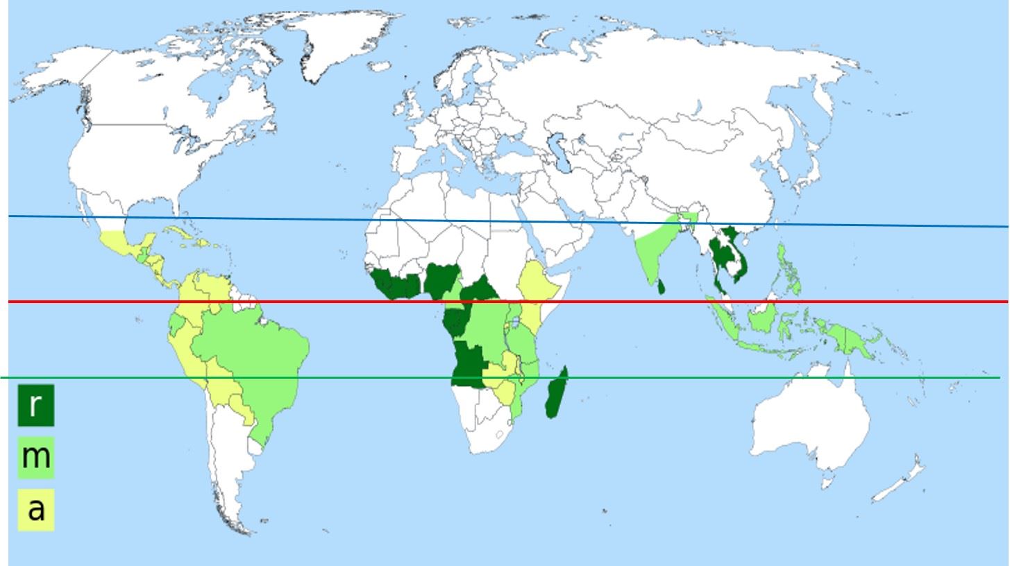 Robusta ist anspruchslos. Der Robusta ist ein Tiefstapler: Er benötigt nicht mehr als 300 bis 800 Höhenmeter um sich wohl zu fühlen. Am Liebsten wächst er aber entlang des Äquators - zwischen den Wendekreisen des Krebses und des Steinbocks.